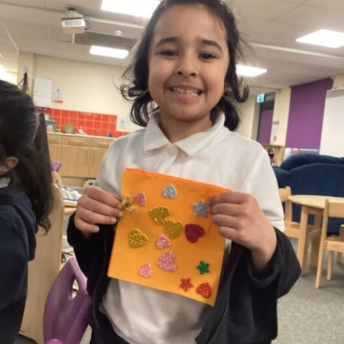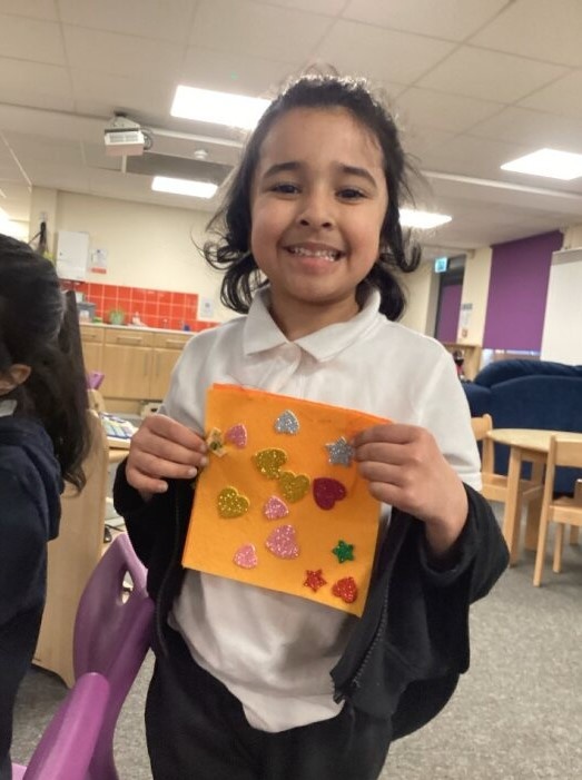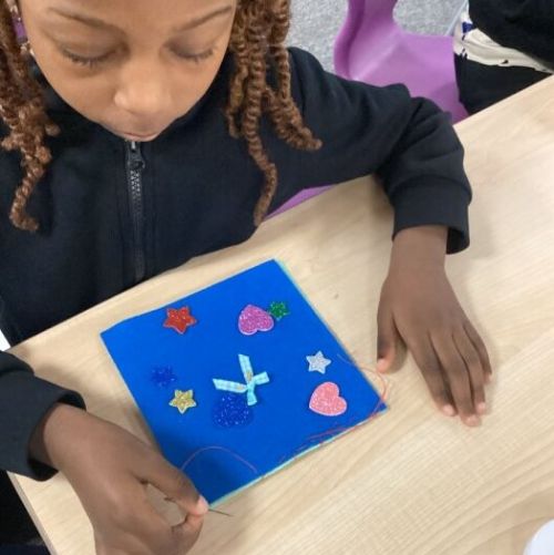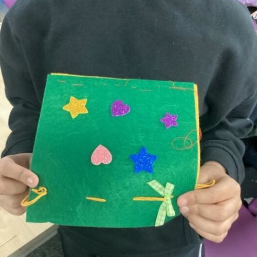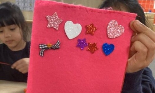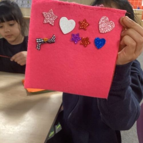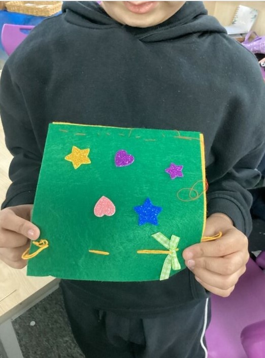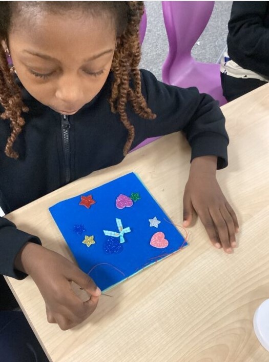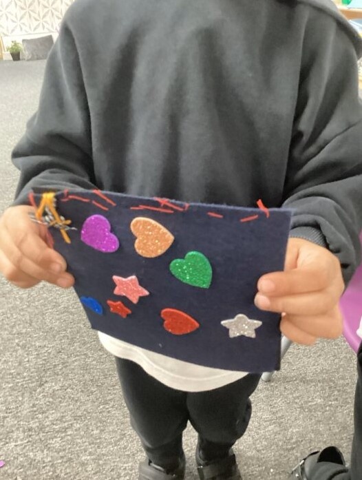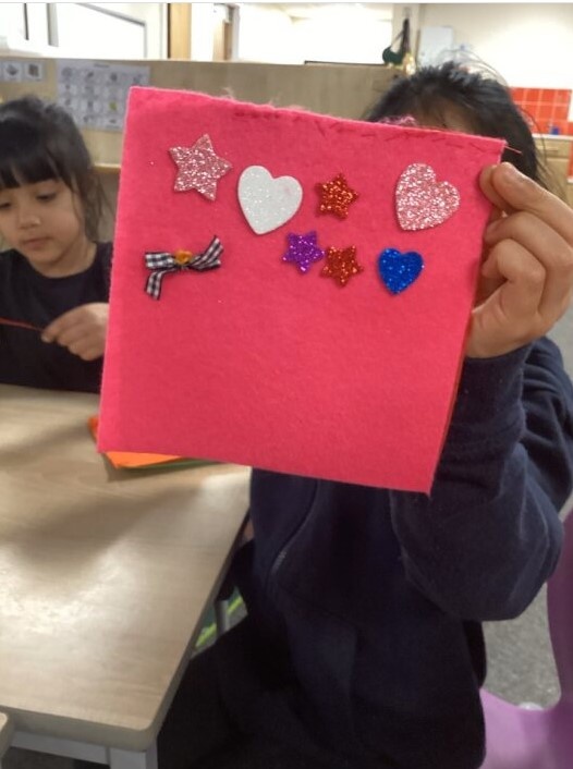 The children added hearts and stars, and carefully sewed on a small ribbon to decorate their work ⭐❤️