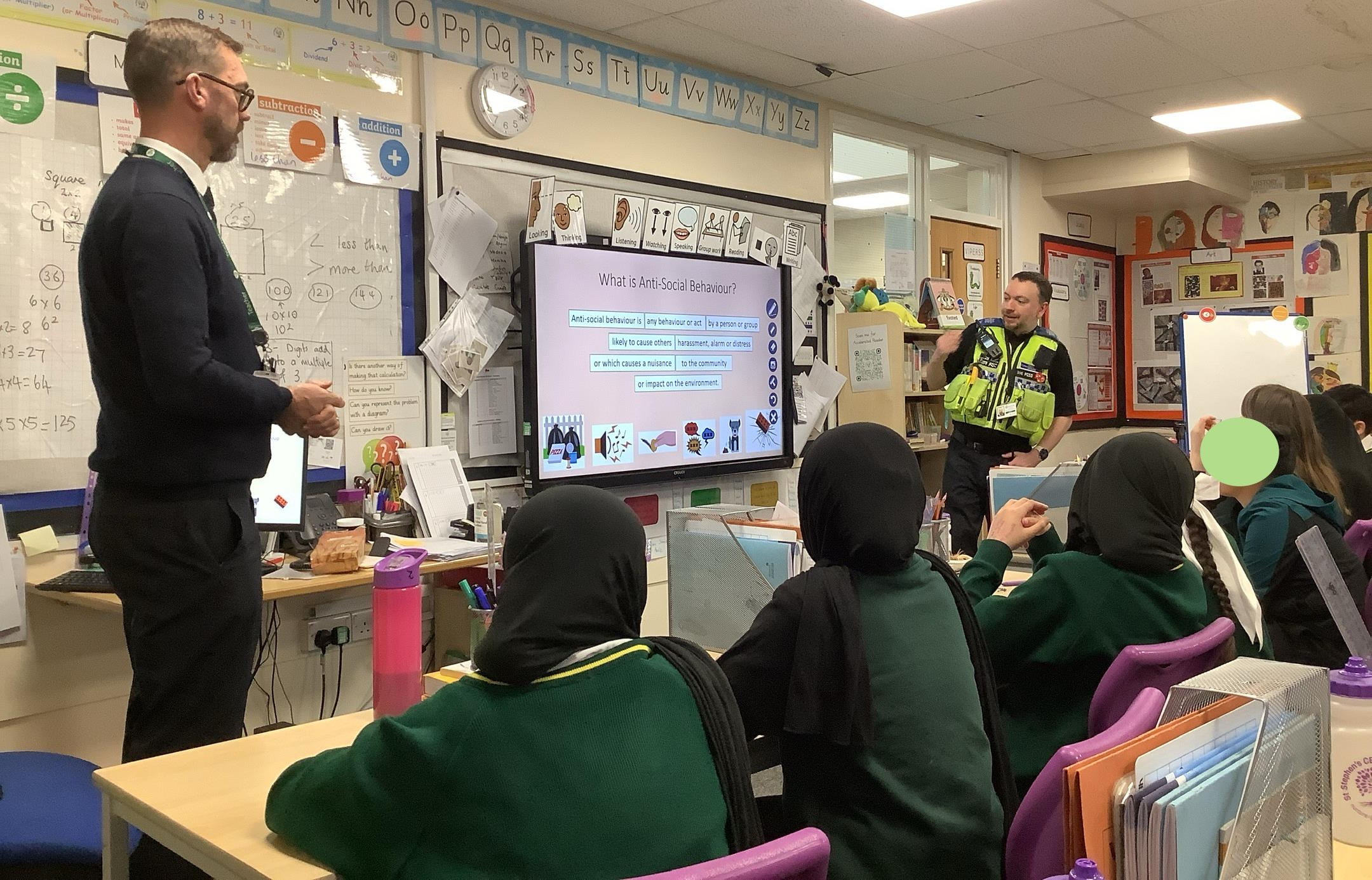 Year 6 welcomed a visit from a local police officer this week, who spoke to the children about Anti-Social Behaviour.
