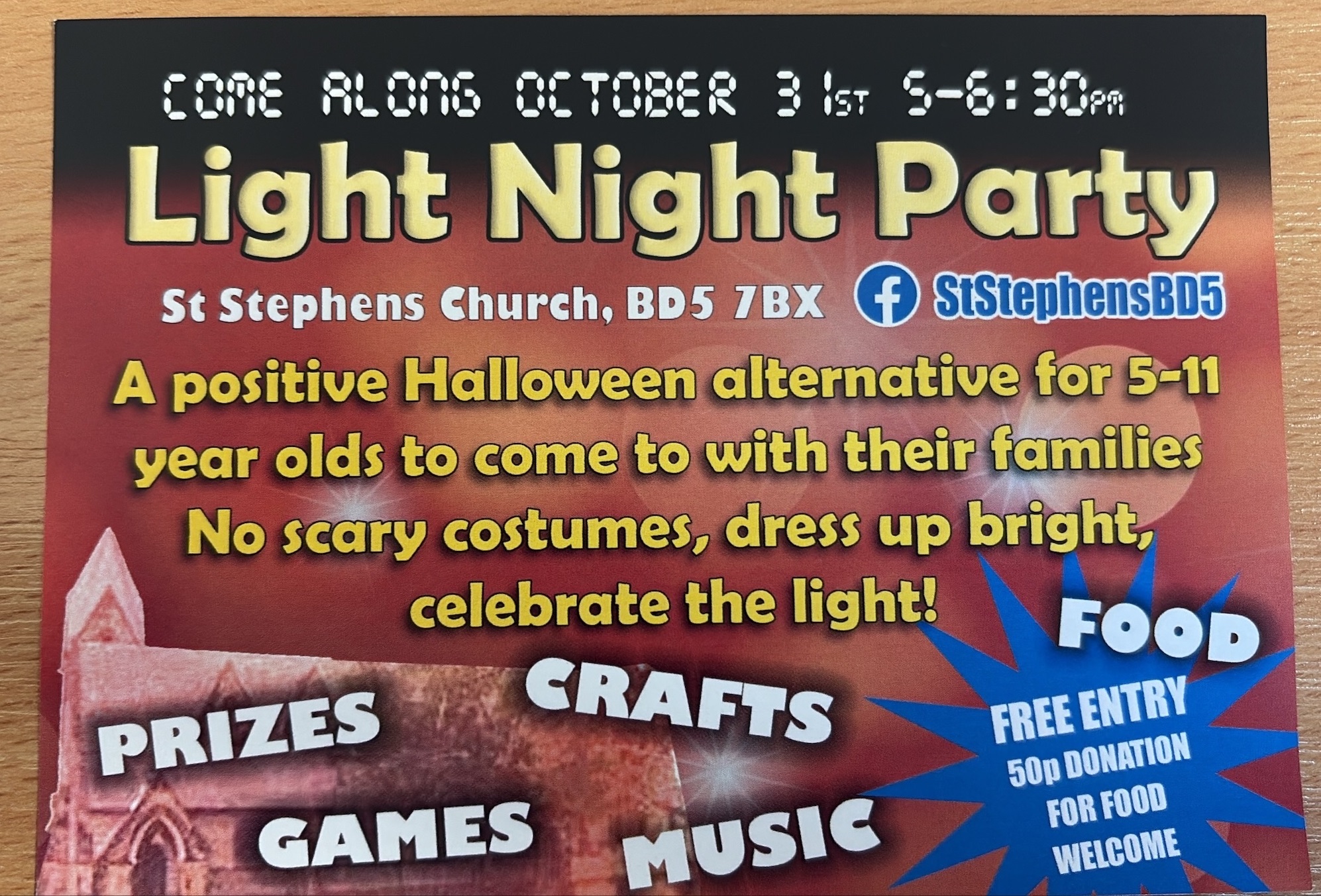 Come along to St Stephen's Church BD5 and enjoy the Light Night Party!