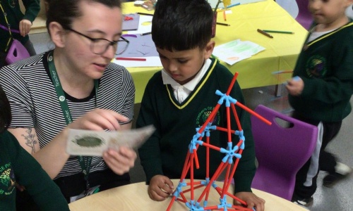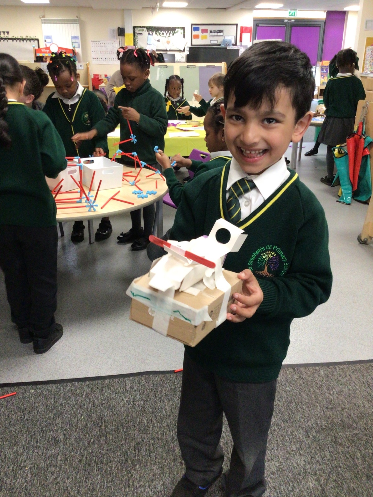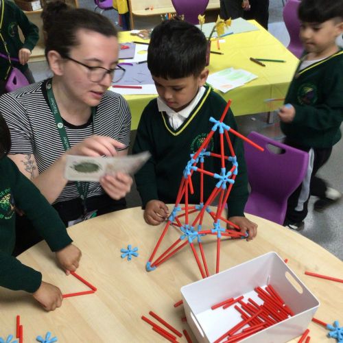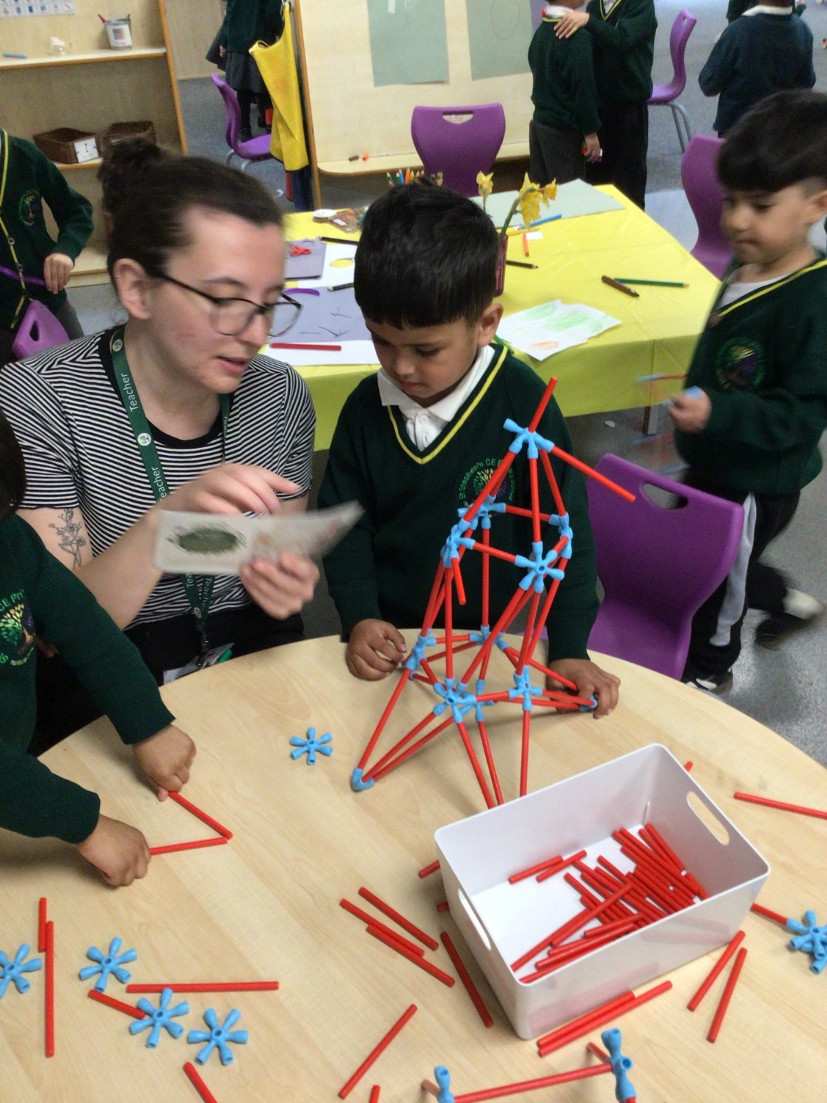 After learning about flowers like bluebells and daffodils, the children created beautiful artwork. They also used our open ended resources to make necklaces, transformers, and even a cinema built from crates! Lots of thoughtful, creative play