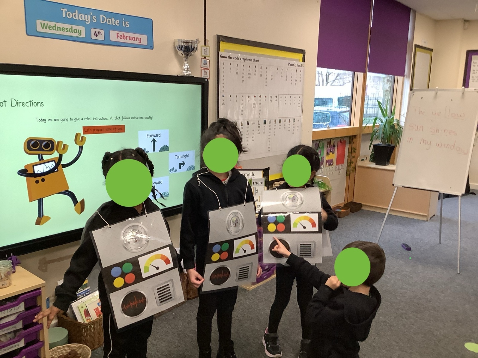 We explored directions through music and movement, programmed our classmates dressed as robots 🤖, looked at how robots help us in real life and then became Bee-Bot detectives, discovering what each button does.