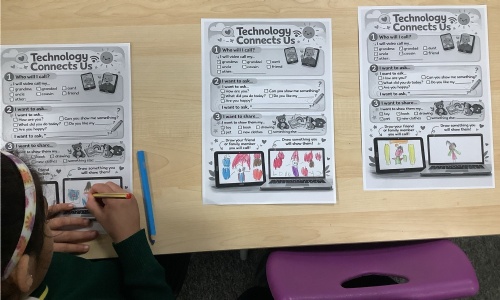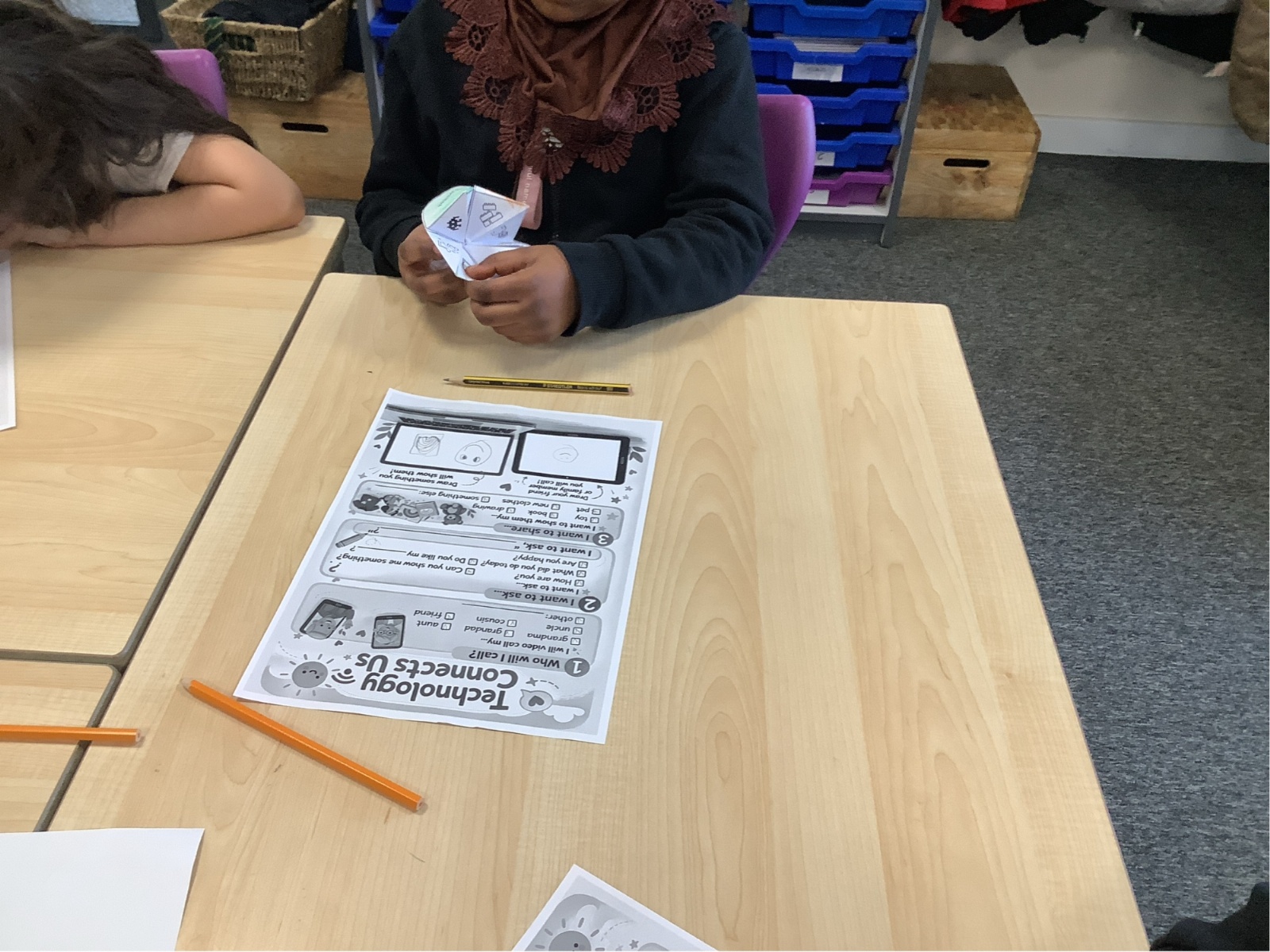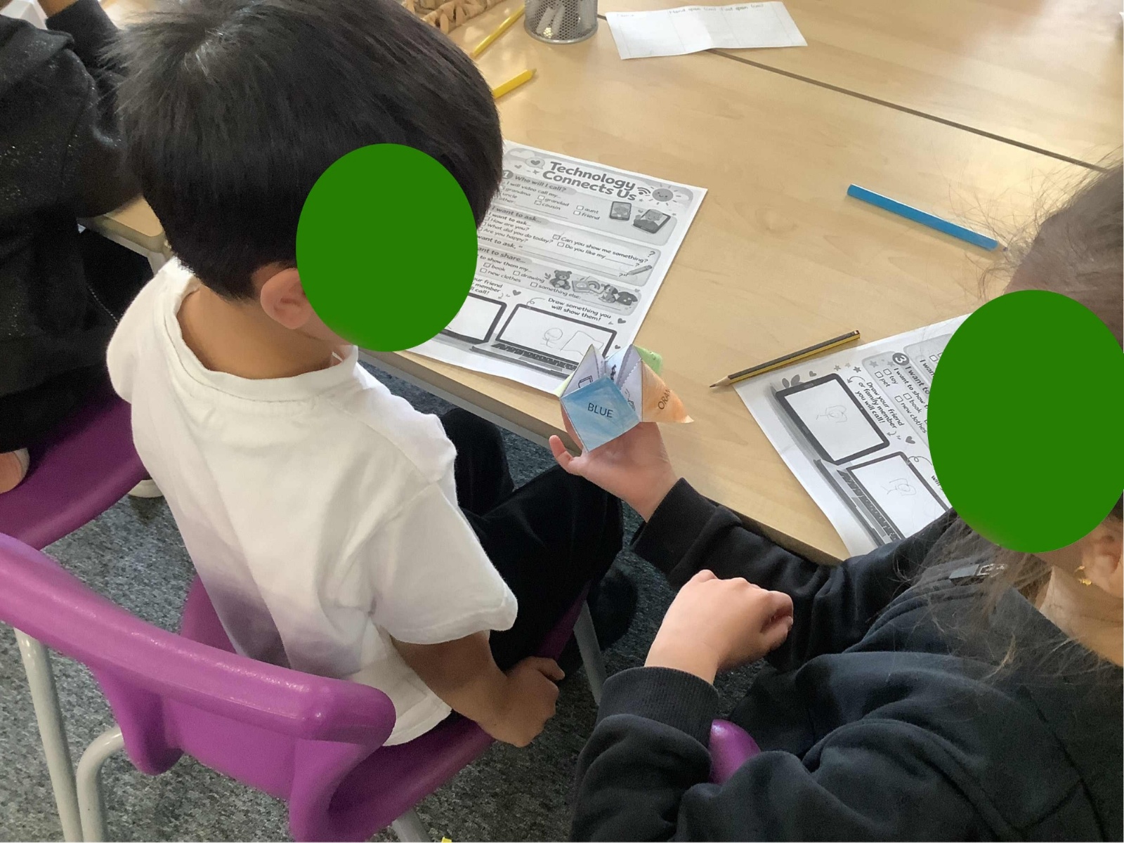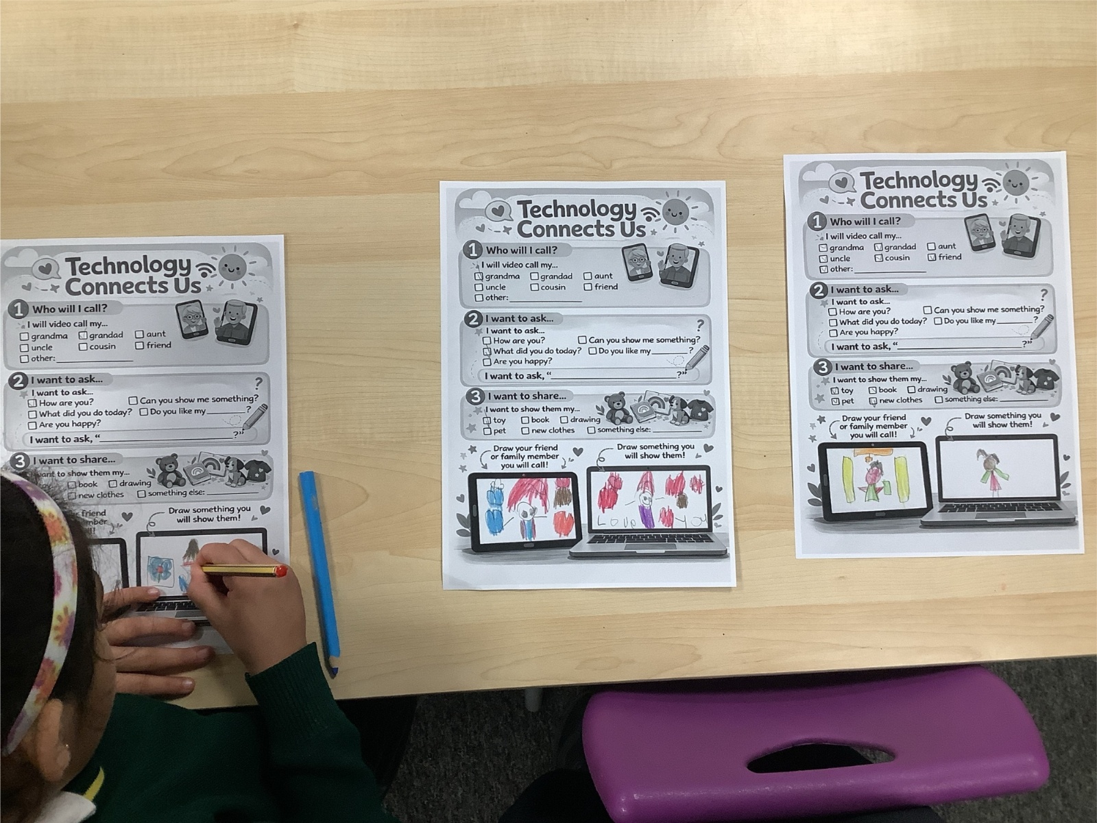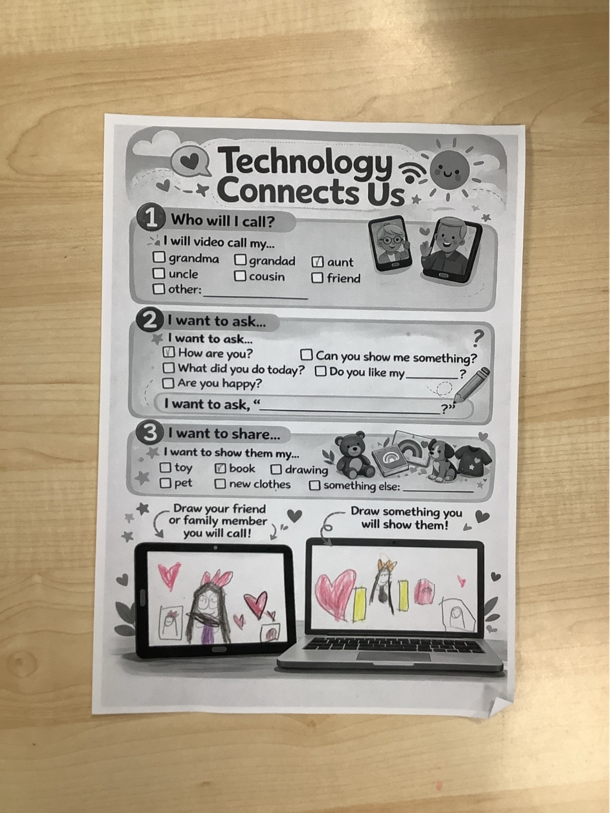 The children created “Curiosity Tellers” to help them ask thoughtful questions. They then used them to ask their classmates questions, practicing speaking clearly, listening carefully and showing interest in others. We also watched a video about the character Heart, who video called his grandma. This helped us think about how technology can help us stay connected with the people we care about. ❤️