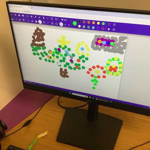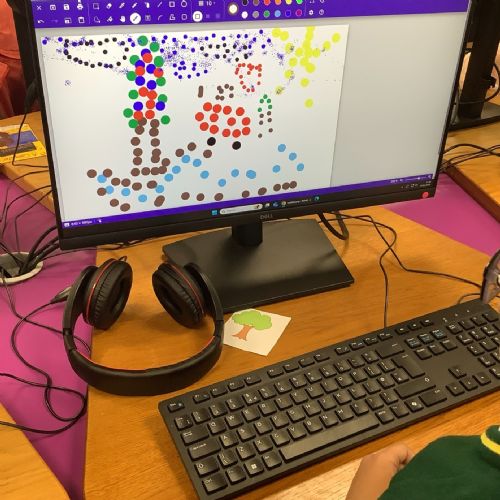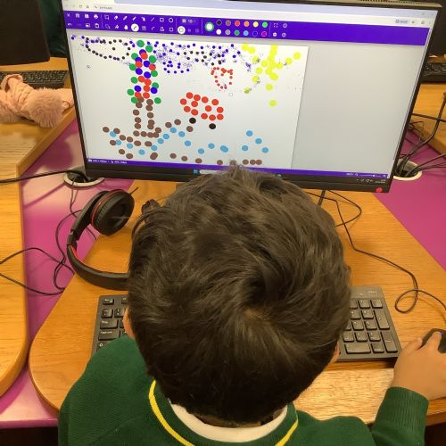After exploring some of his paintings, the children had a go at making their own dotty pictures on the computer.