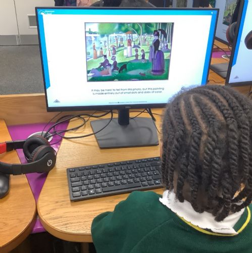 In Computing, Year 1 learnt about the artist Georges Seurat, who created his artwork using tiny dots of colour – a style known as pointillism.