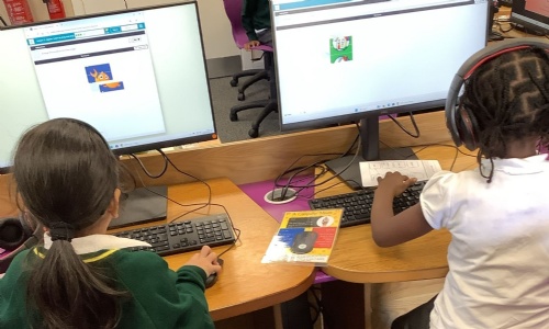 Next, they practiced using a mouse – discovering how to point, click, and drag objects on the screen through a fun interactive game.