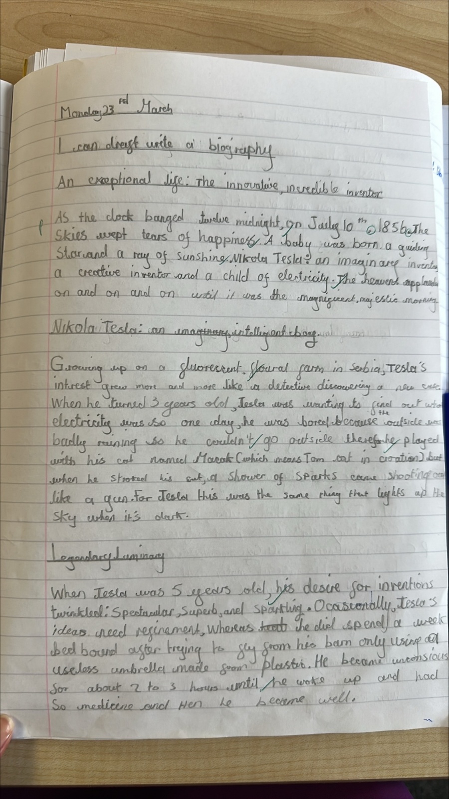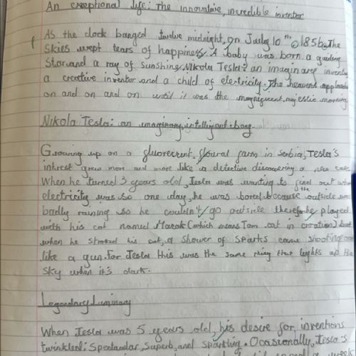 Year 4 have been hard at work writing biographies about the scientist Nikola Tesla.