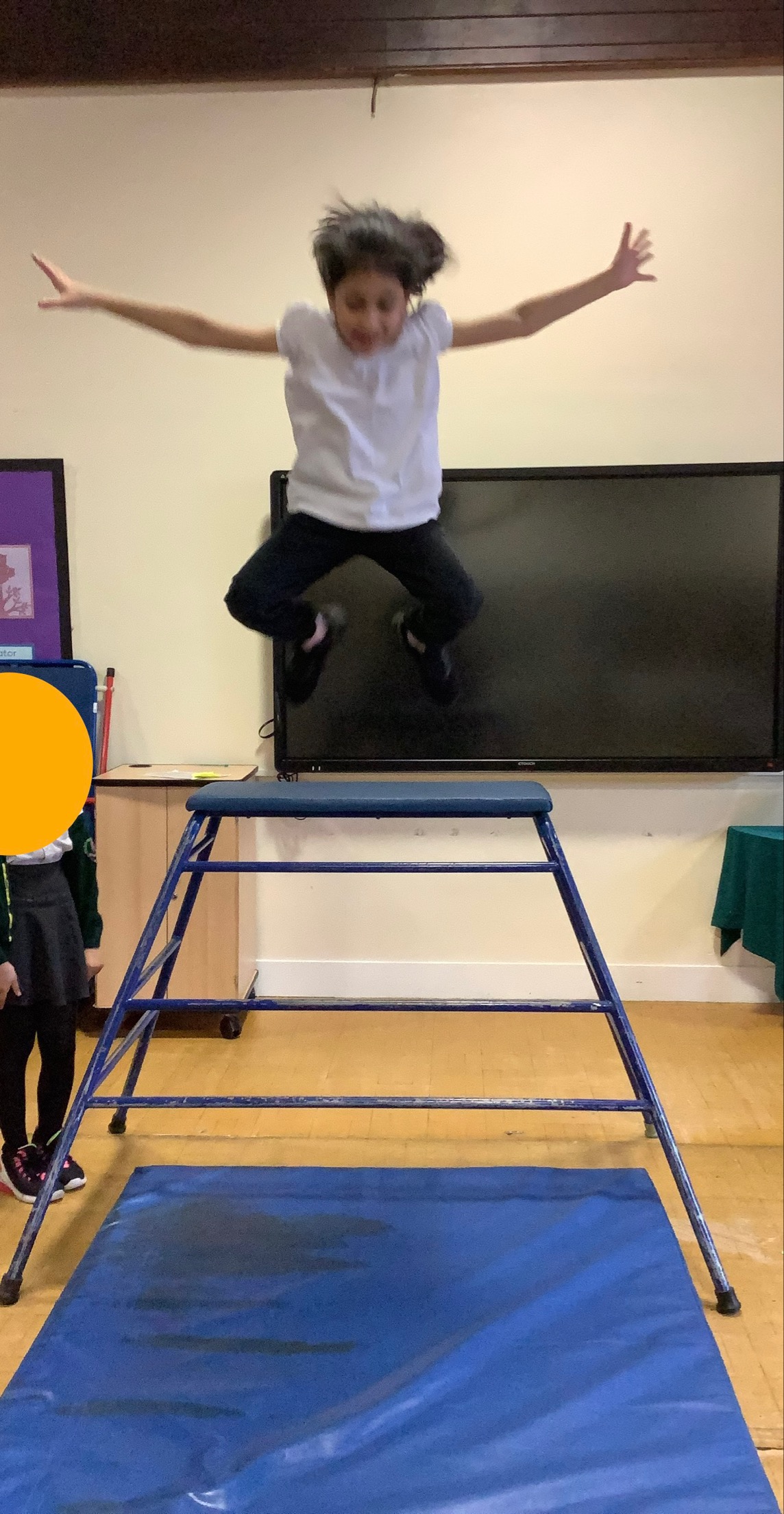 We got stuck straight in and practised our jumping technique, focussing on bending our knees when landing so we wouldn’t injure ourselves. We built up the height we jumped from gradually, and we were very brave!