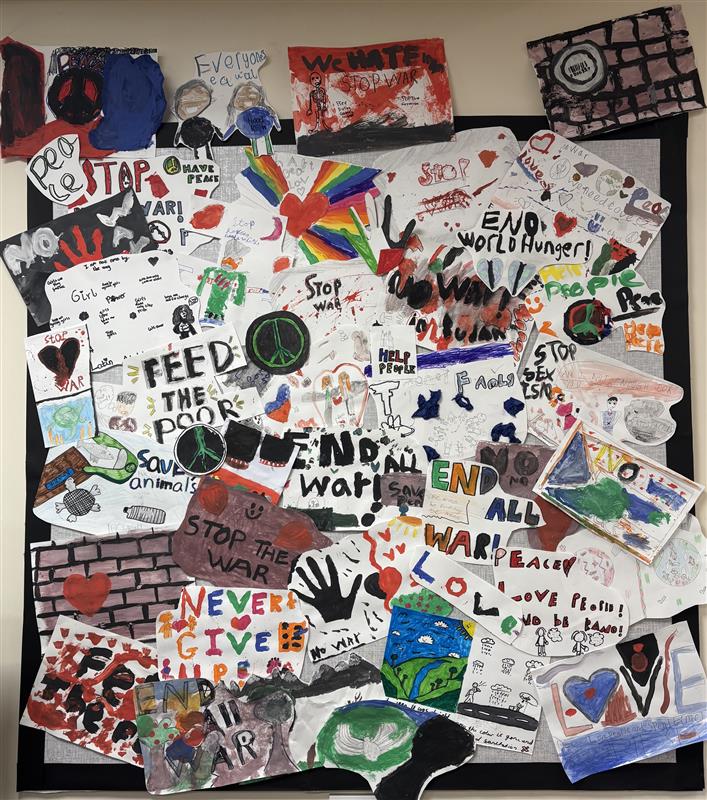 Year 5 have created a protest gallery of artwork they have created this half term.