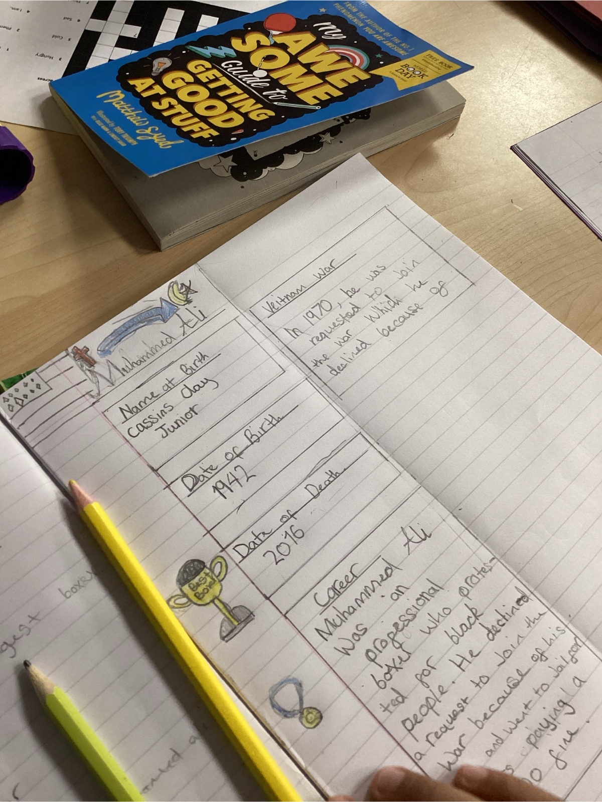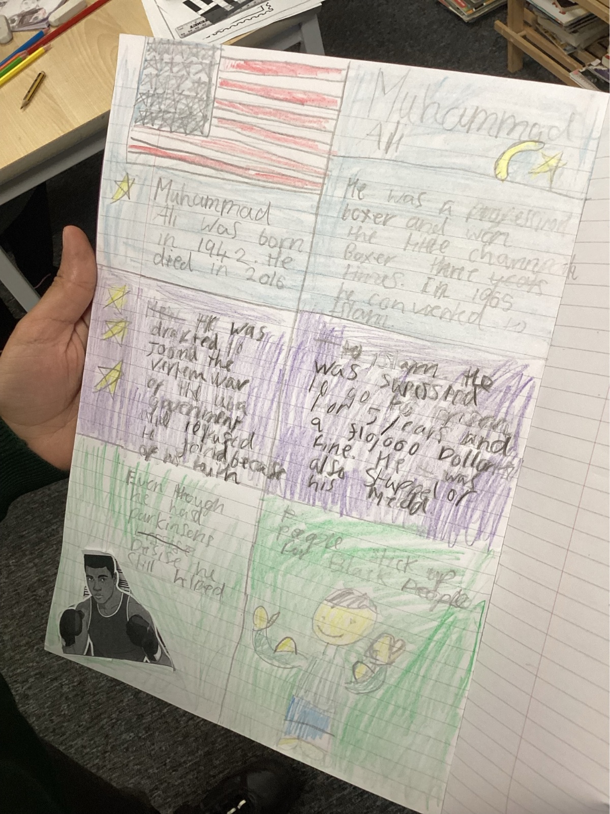 In Year 5 we have been learning about black history, especially the work and life of Muhammad Ali.