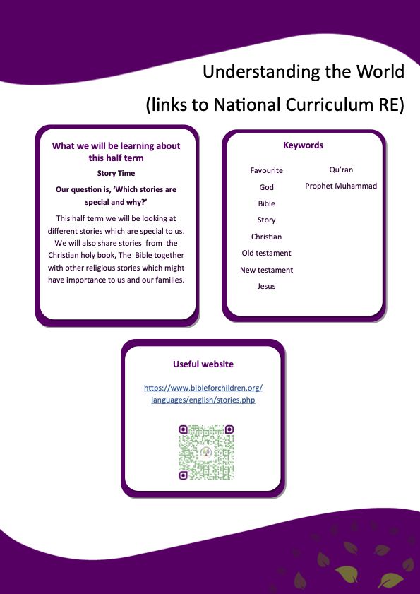 - Reception Understanding the World (links to National Curriculum Religious Education)