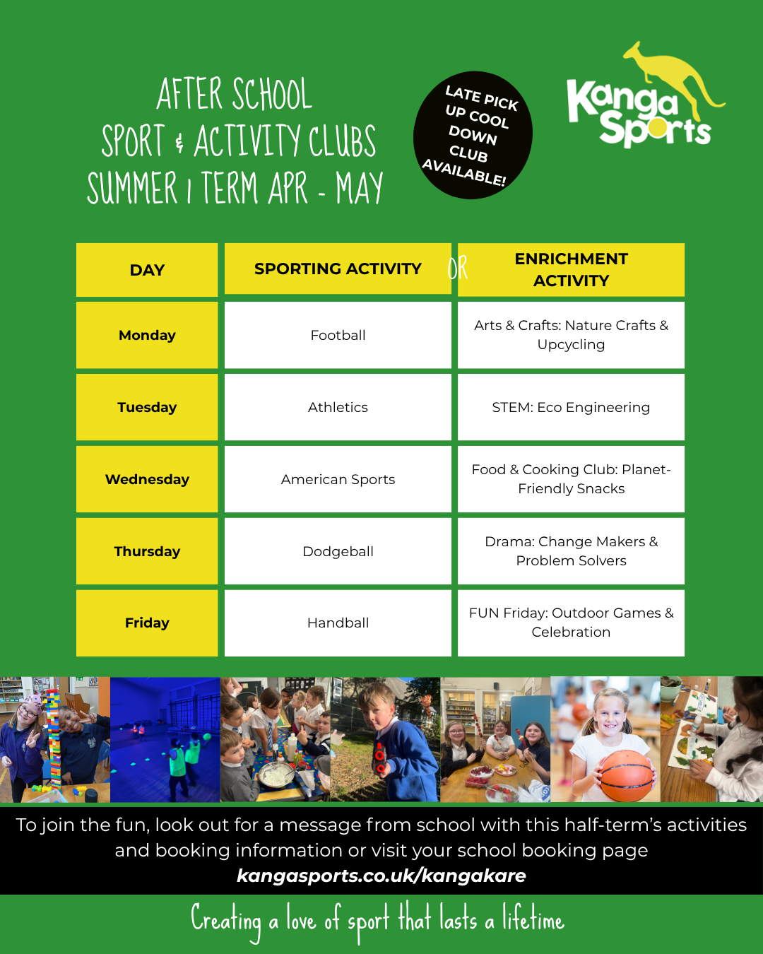 A diverse range of before and after-school sports activities tailored for children from Reception (Age 4) through to Year 6.Sports clubs and enriching activities designed to engage, inspire, and develop your child's interests and abilities beyond the classroom.kangasports