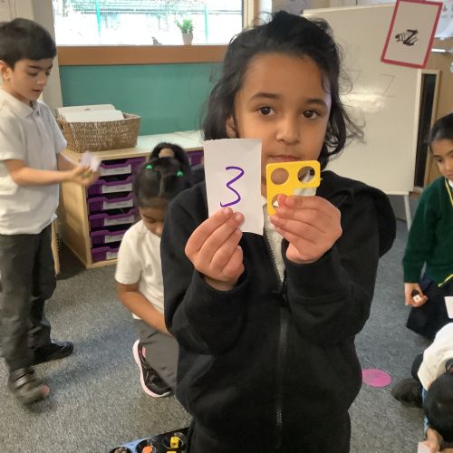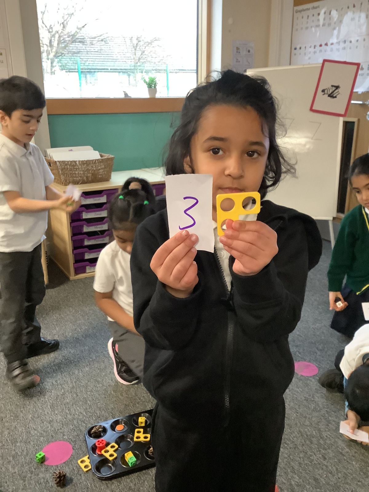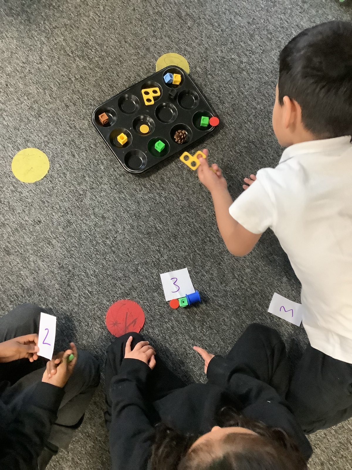 This week we've been busy consolidating our learning of numbers 1,2 and 3 through lots of fun, hands on activities. We have gone on a shape hunt around school and played lots of fun games such as dominoes!