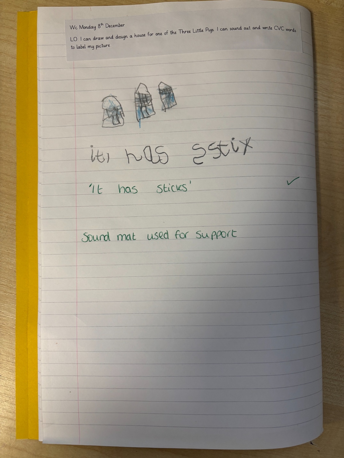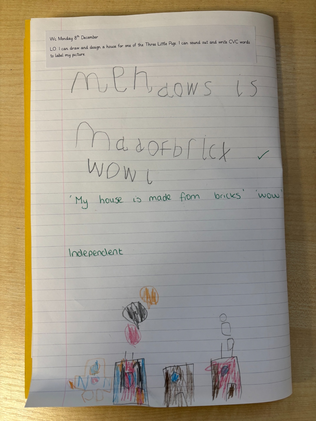 They’ve been designing and writing about our core story, The Three Little Pigs, creating their own houses and describing them with growing confidence. We are so proud of their effort and creativity!