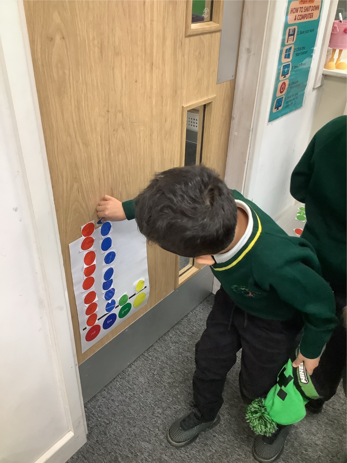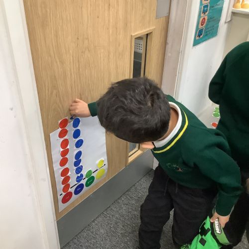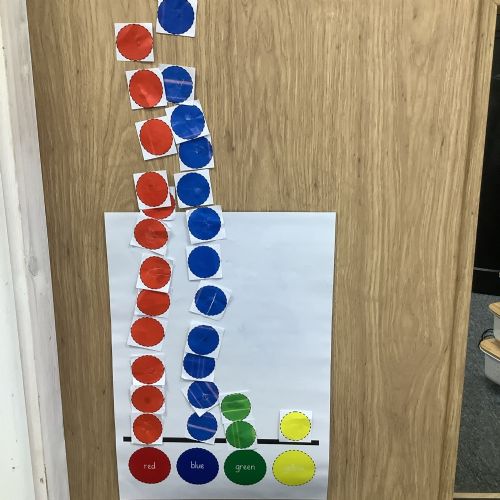 The children took a class vote on their favourite colour and created a paper pictogram to show the results.