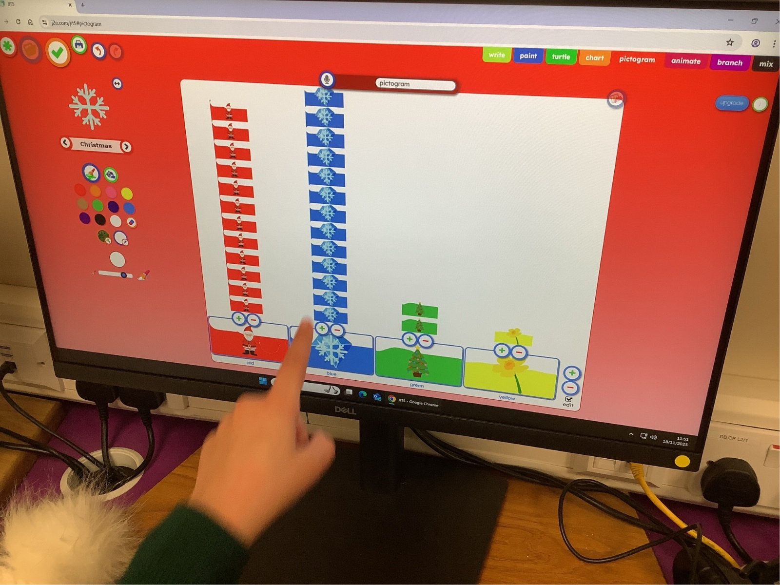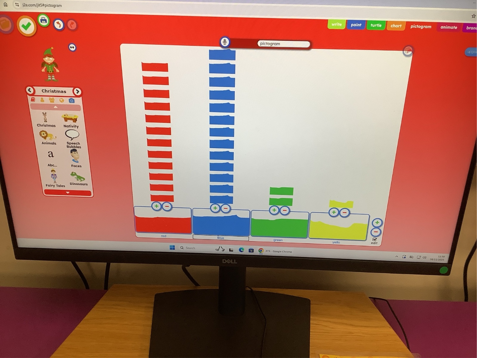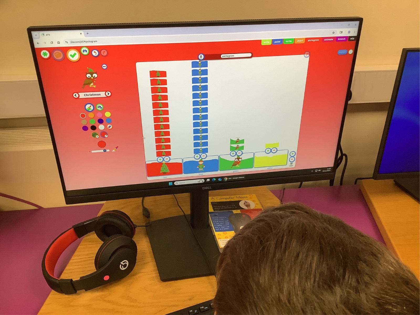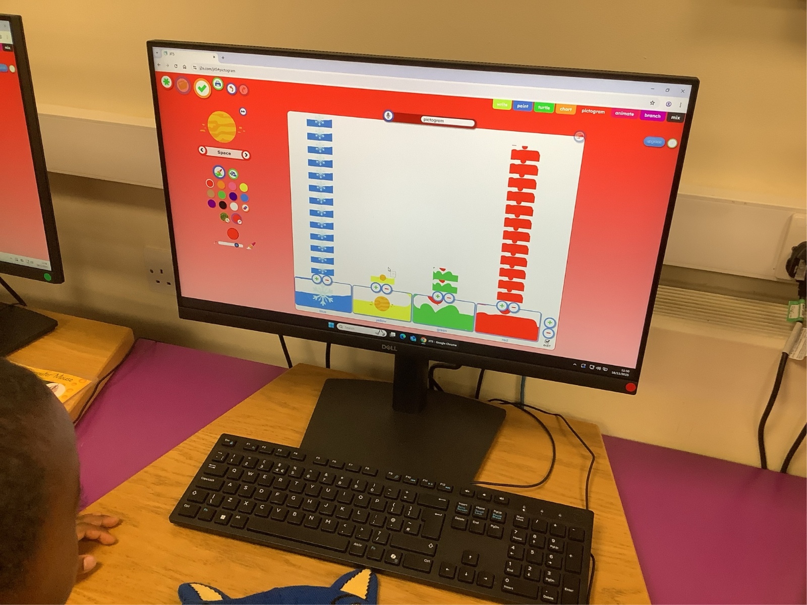They then used the computers to make a digital pictogram, learning how information can be displayed clearly on-screen. The children enjoyed comparing both versions and discussing which colours were the most popular.
