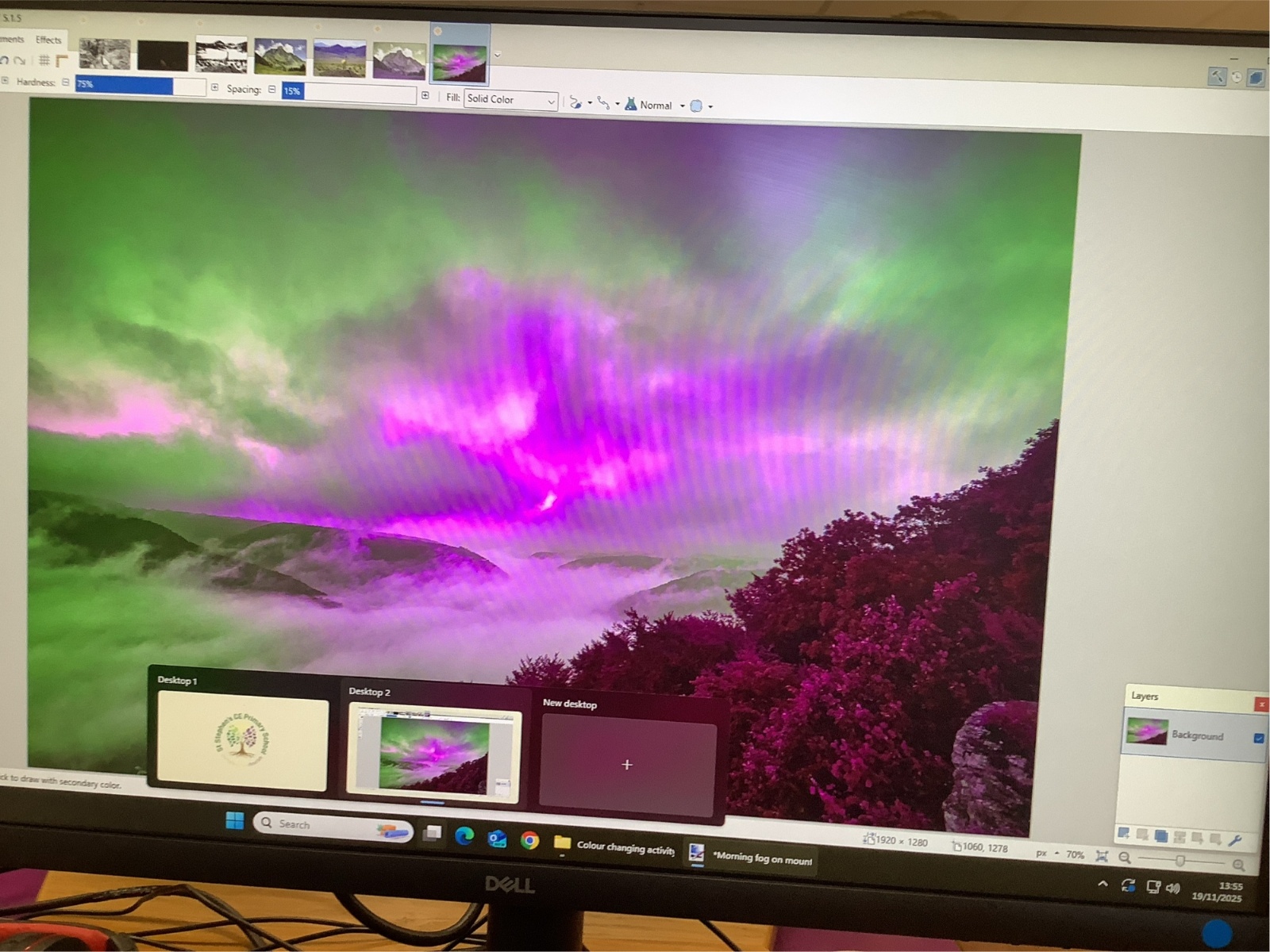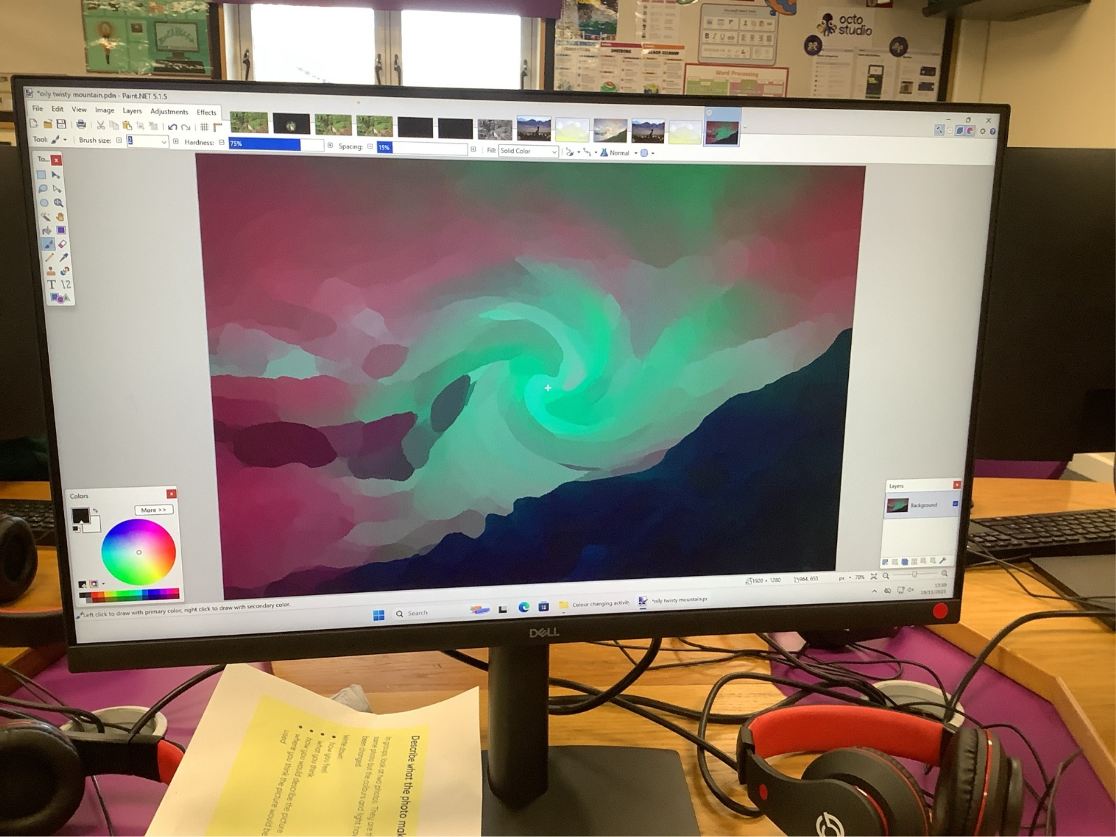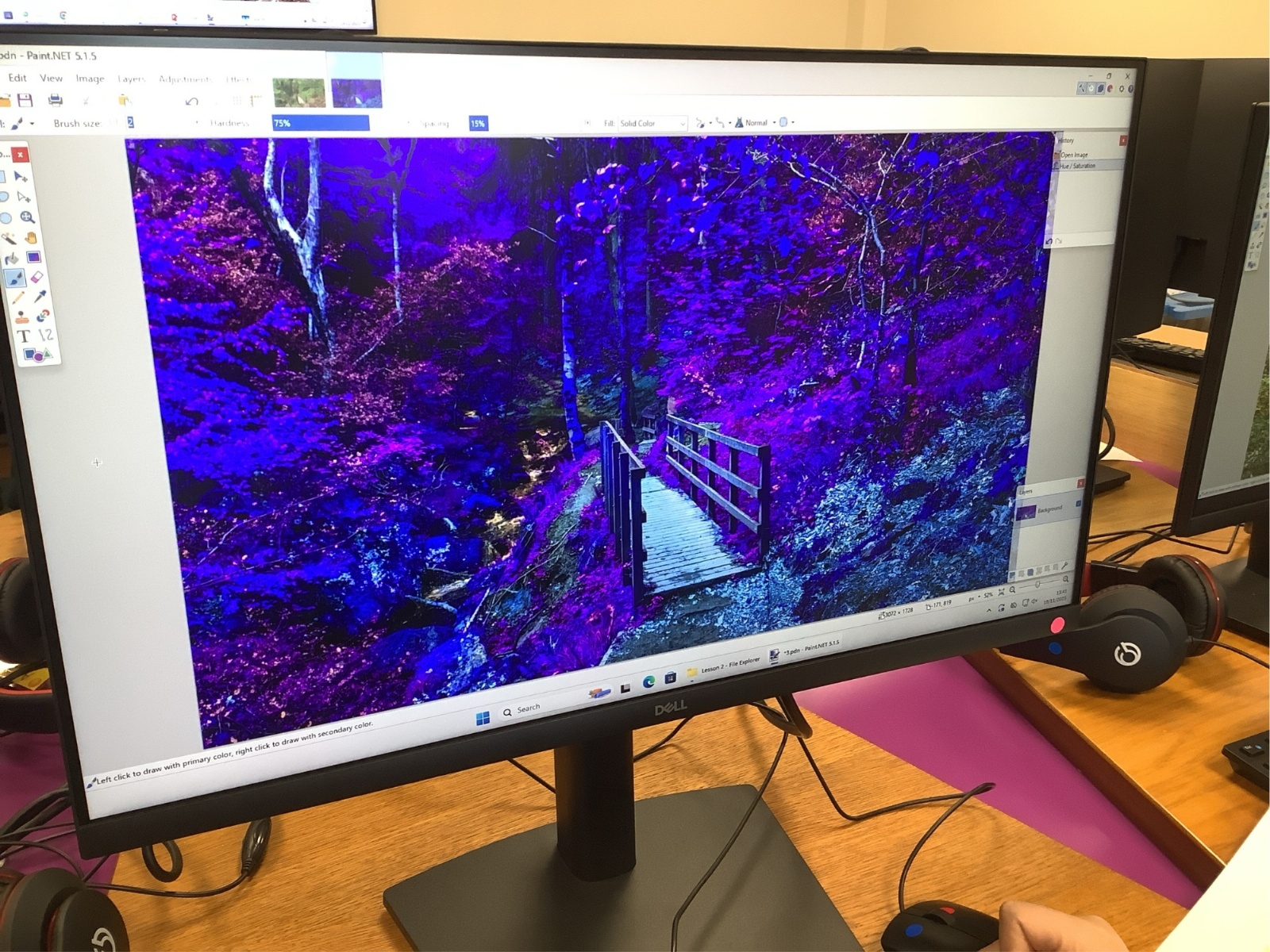 Photo Editing. Our focus was on how images can be changed using different filters and effects and how these changes can completely alter the mood or message of a picture. We enjoyed experimenting and discussing how simple edits can transform the story a picture tells.