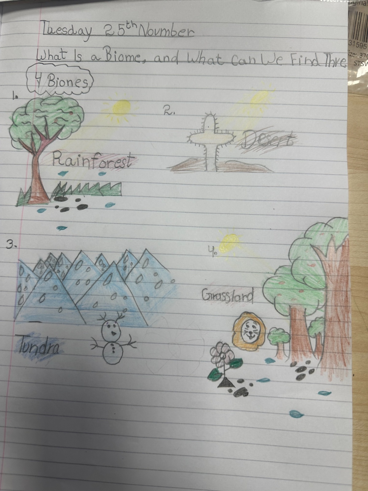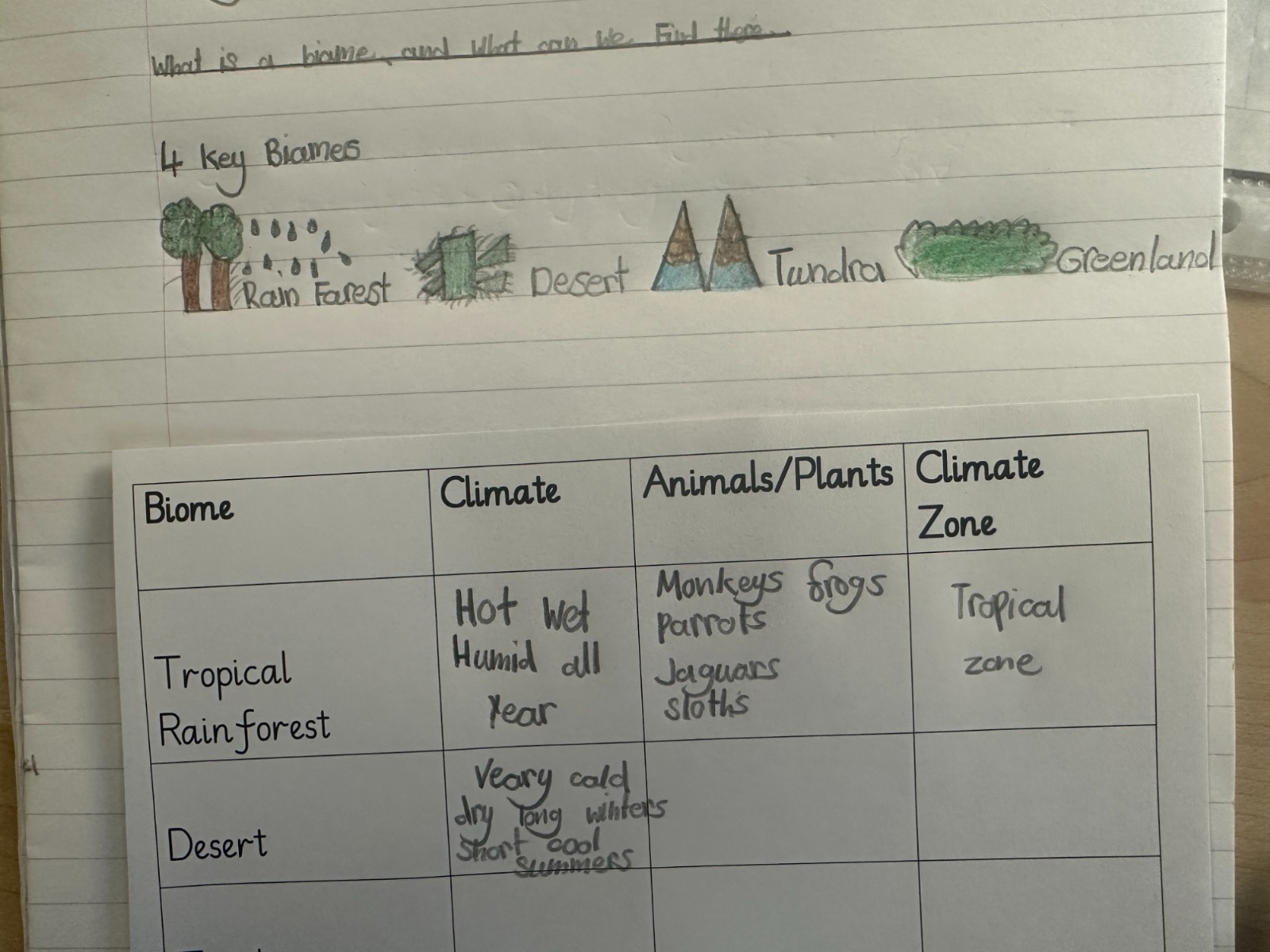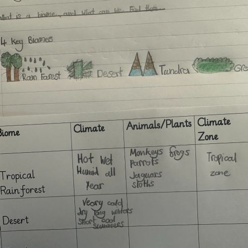 This term in Geography, Year 4 are finding out how the climate is different all around the world and whether we can affect it. This week they learnt about the different biomes, including rainforests, deserts, grasslands and tundra. They discovered how climate influences plants, animals and human activity.